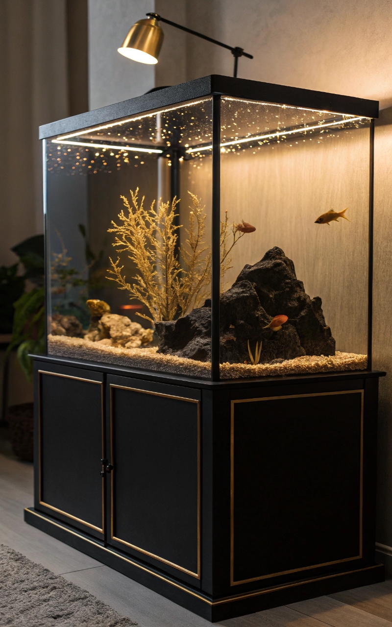 Pro Tip: Use warm lighting to enhance the gold tones without overpowering the tank.