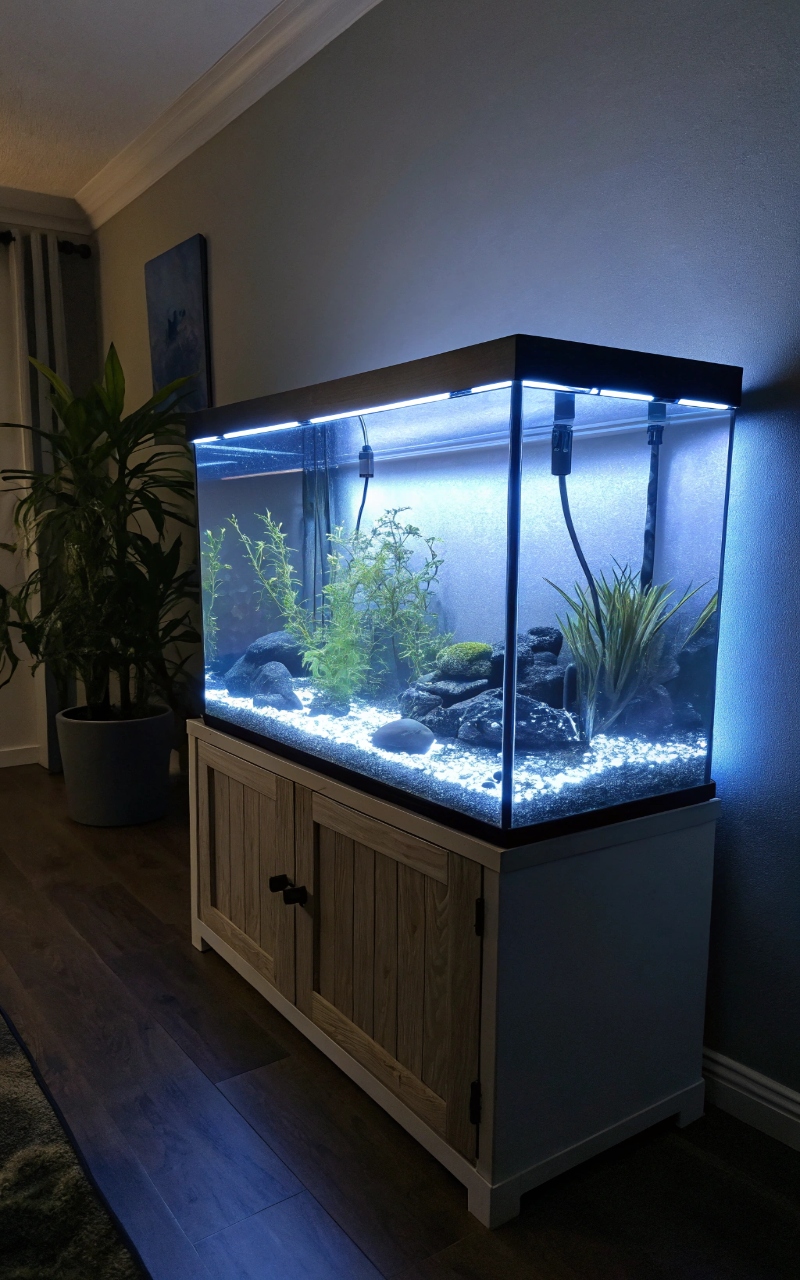 Adding LED lighting transforms a simple tank into something visually stunning, especially at night. I used soft blue and white tones, and it created a calm, almost futuristic vibe. The glow enhances every detail without feeling harsh. It’s perfect if you want your tank to double as ambient lighting.