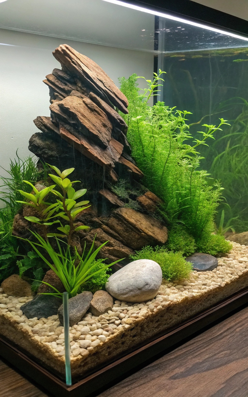 Layering different elements creates depth and visual interest that keeps your eyes moving. I combined plants, stones, and wood at different heights, and it made the tank feel larger and more dynamic. It’s a bit more detailed, but the result is worth it.
