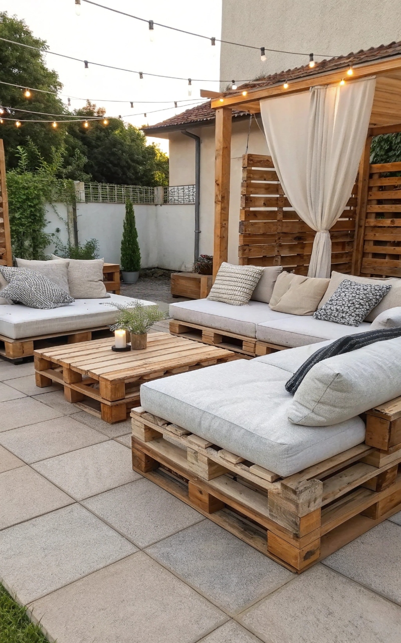 Using pallets for seating is a budget-friendly way to create a comfortable hangout area. I stacked a few, added cushions, and it turned into a casual lounge spot. It’s relaxed, functional, and surprisingly stylish.