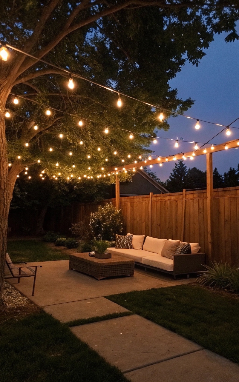Adding string lights is one of the easiest ways to transform your space, especially at night. I draped them across the yard, and the soft glow made everything feel warm and inviting. It’s simple, but it changes the mood instantly. It’s like your backyard gets a whole new personality after sunset.
