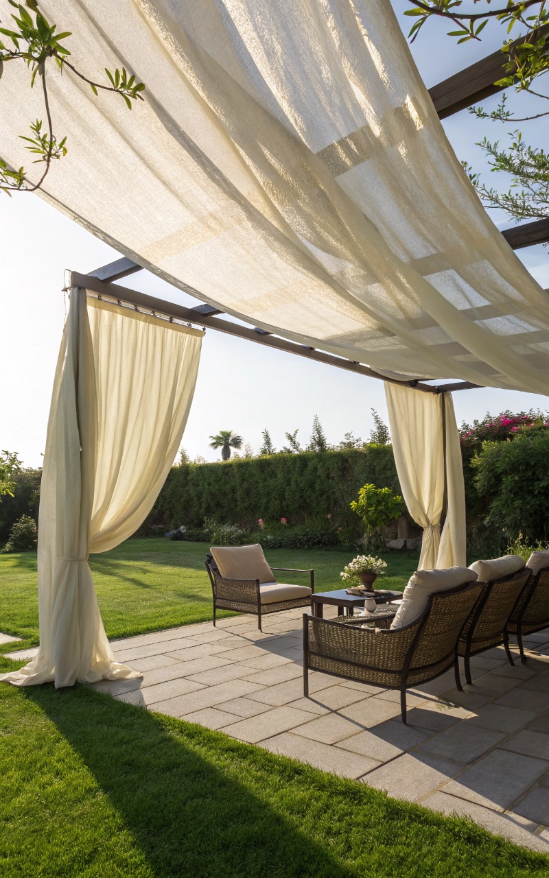 A simple canopy can make a huge difference on sunny days. I used fabric and a few supports, and it created a cool, shaded area that felt instantly more comfortable. It’s practical and adds a soft visual element.