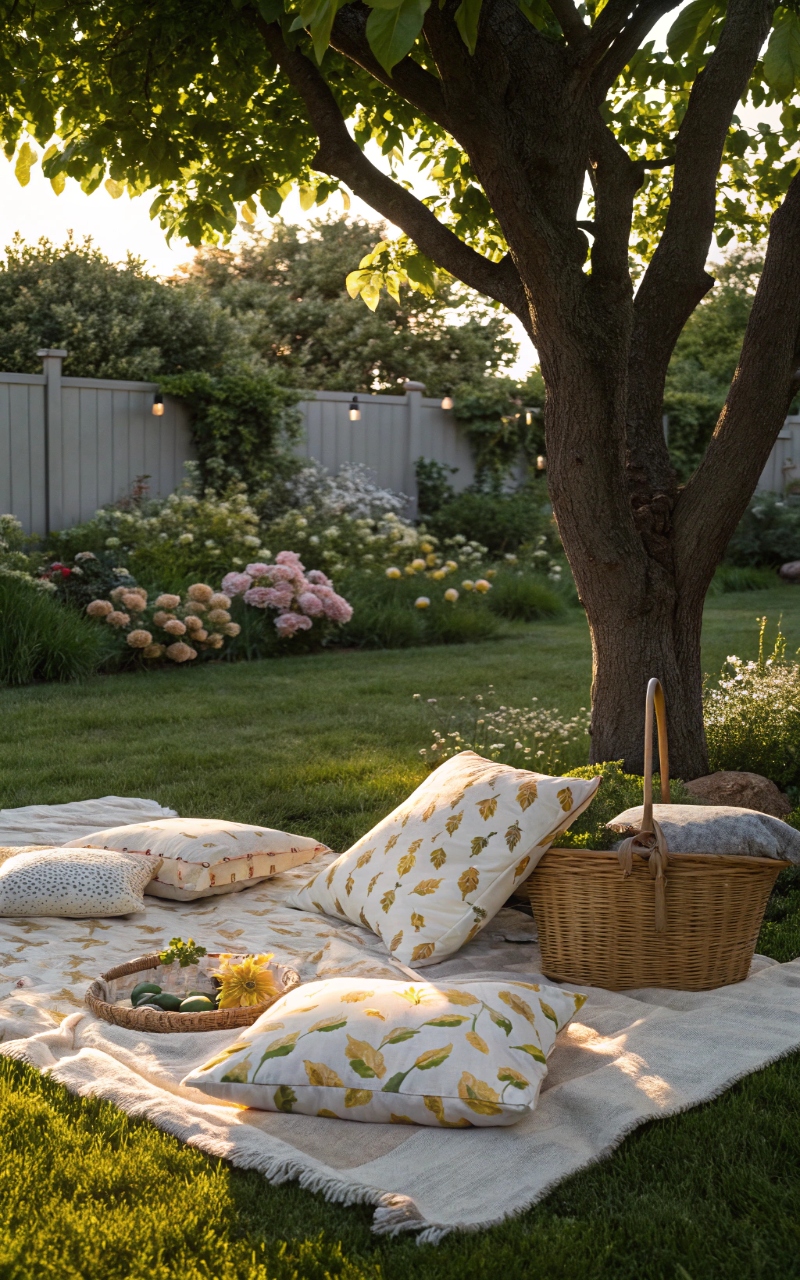 Creating a picnic corner is as easy as laying down a blanket and adding a few cushions. I set one up under a bit of shade, and it became the perfect spot for snacks or just relaxing. It’s simple, but it feels intentional and inviting.