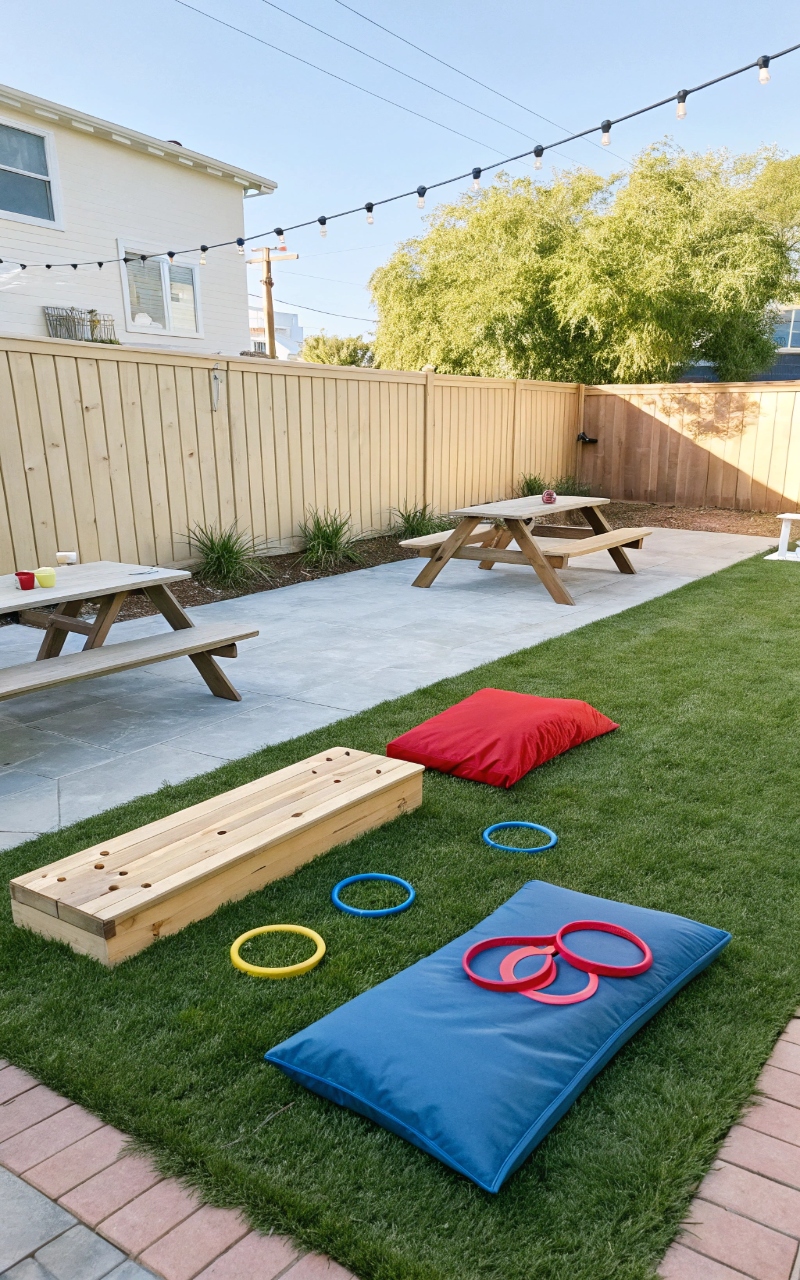 Setting up simple games like ring toss or bean bags adds a playful touch to your backyard. I cleared a small space, and it quickly became a go-to activity area. It’s easy, interactive, and great for all ages.