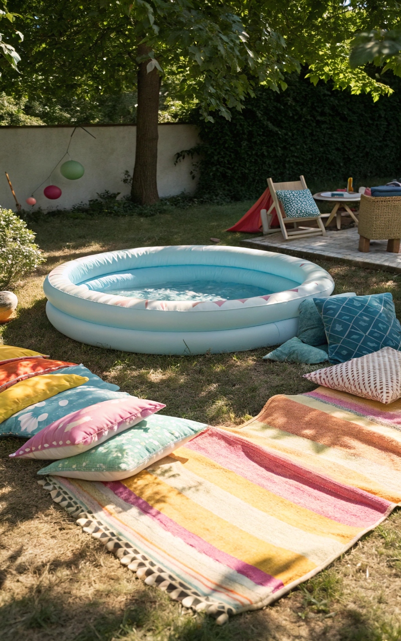 You don’t need a full-sized pool to cool off and enjoy summer. I grabbed a small inflatable pool, added a few cushions around it, and it instantly became a mini relaxation spot. It’s perfect for hot afternoons when you just want to dip your feet and unwind. It feels casual, fun, and honestly kinda refreshing in the best way.