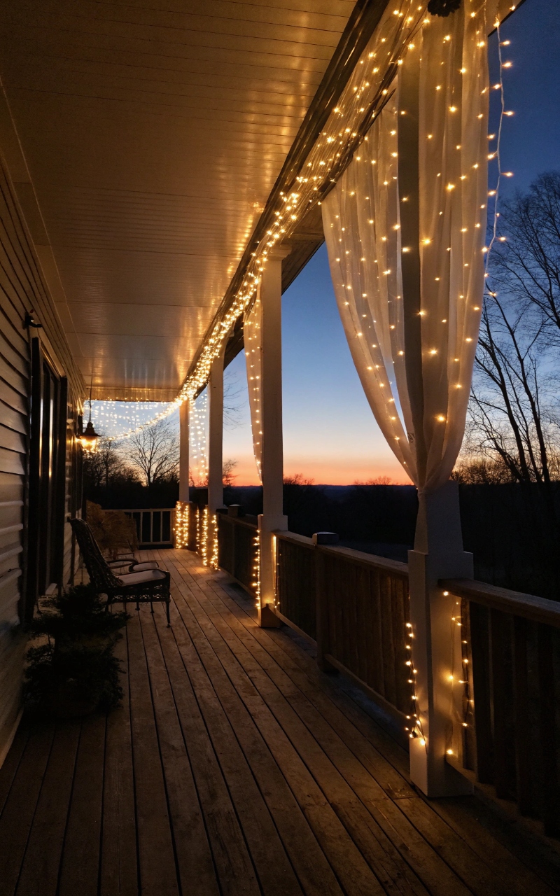 I filled mason jars with small lights and placed them around the porch, and they added a soft, rustic glow that feels cozy and festive. The glass reflects light beautifully, especially at night. It’s a budget-friendly idea that still looks thoughtful. The jars add charm without clutter. It’s simple, but effective. Pro Tip: Use battery-operated lights for convenience.