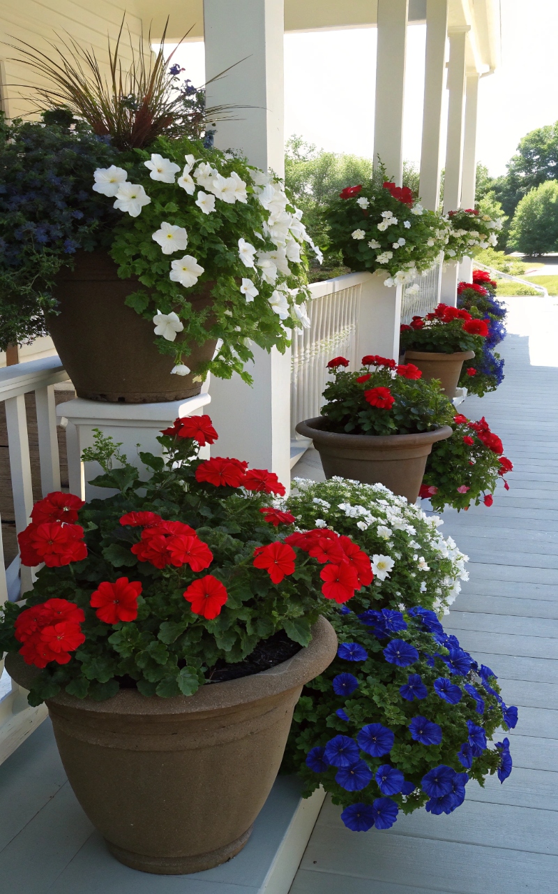 I arranged red, white, and blue flowers in pots, and it added a fresh, natural element to the decor. The greenery softens the bold colors, creating a balanced look. It’s decorative and alive at the same time. The colors feel vibrant without being forced. It’s such a refreshing detail. Pro Tip: Use varying pot sizes for layering.