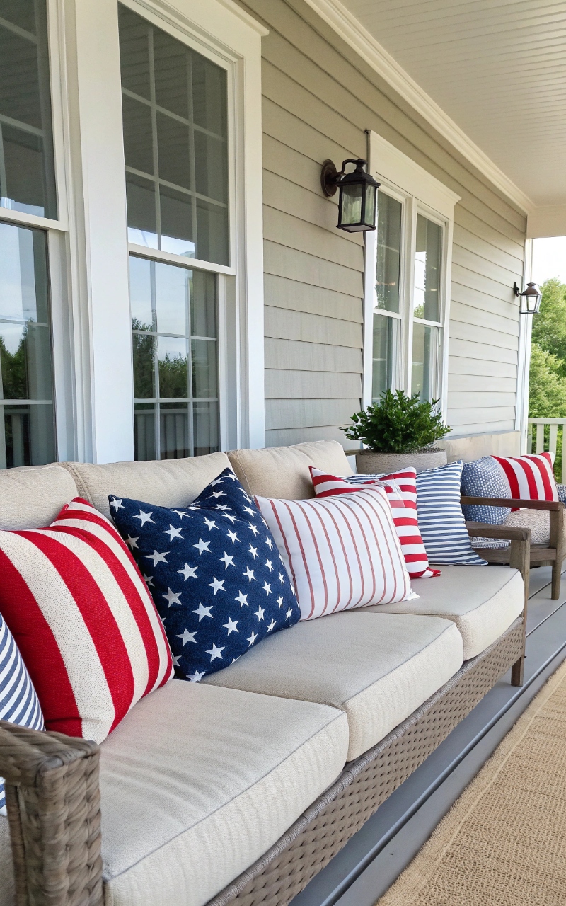 I decorated my front porch for the 4th of July, it wasn’t some big, planned-out project—it was more like a last-minute decision to make the space feel a little more festive. I stepped outside, looked around, and realized the porch felt quiet, almost disconnected from the energy of the holiday. So I grabbed a few simple things—some flags, a couple of pillows, a string of lights—and started arranging them without overthinking it. Within a short time, the whole space felt brighter, more welcoming, and honestly a lot more fun to sit in. That moment made me realize how much a few small touches can completely shift the atmosphere.