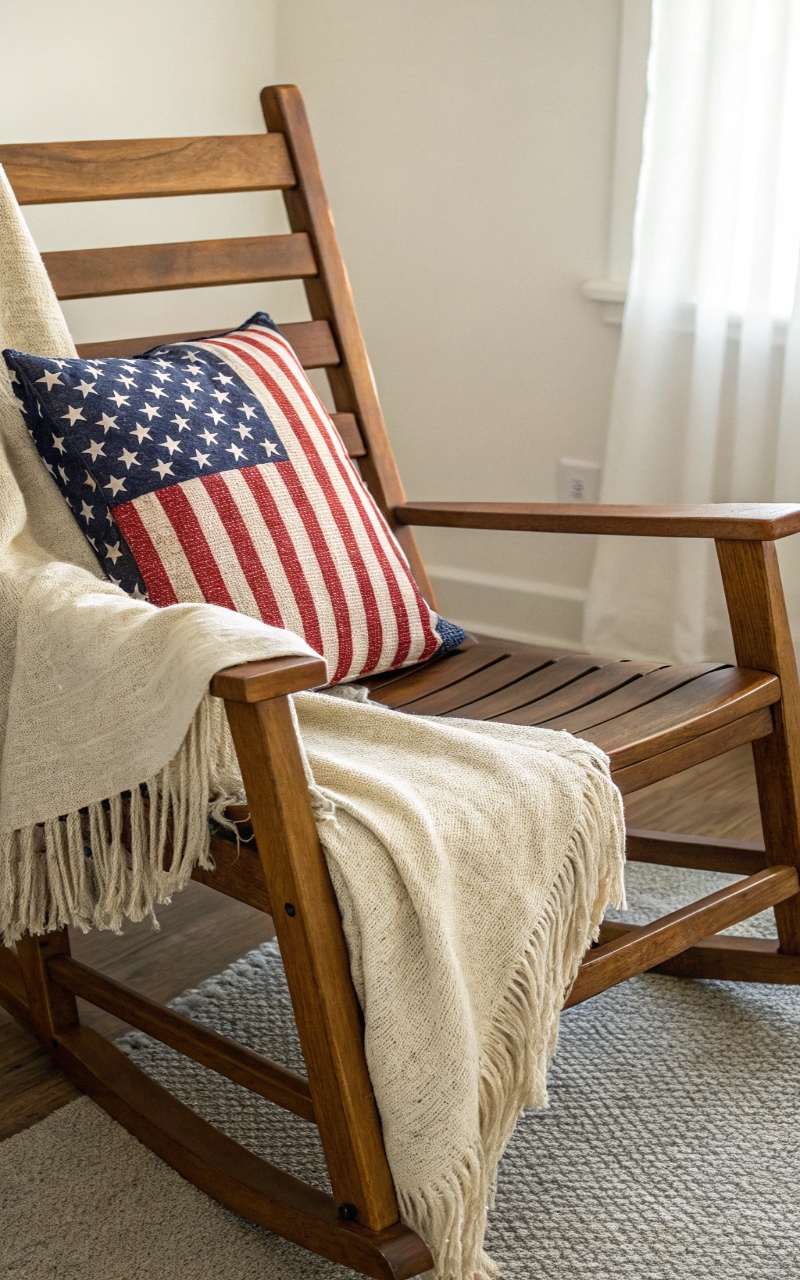 Switching out my regular pillows for patriotic ones gave the seating area an instant refresh. The mix of stripes, stars, and solid colors adds texture without overwhelming the space. It’s one of the quickest ways to make a big impact. The softness balances out the bold color palette. It’s easy, but super effective. Pro Tip: Stick to two patterns and one solid color for balance.
