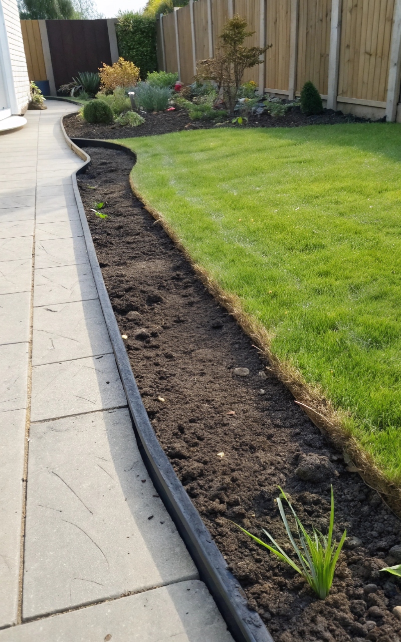 Plastic edging might be basic, but it’s one of the easiest ways to create a clean, defined border quickly. I used it as a base and layered other materials around it. It keeps soil in place effectively. It’s practical and low-cost. Sometimes simple is all you need. Pro Tip: Choose darker tones to blend with soil.