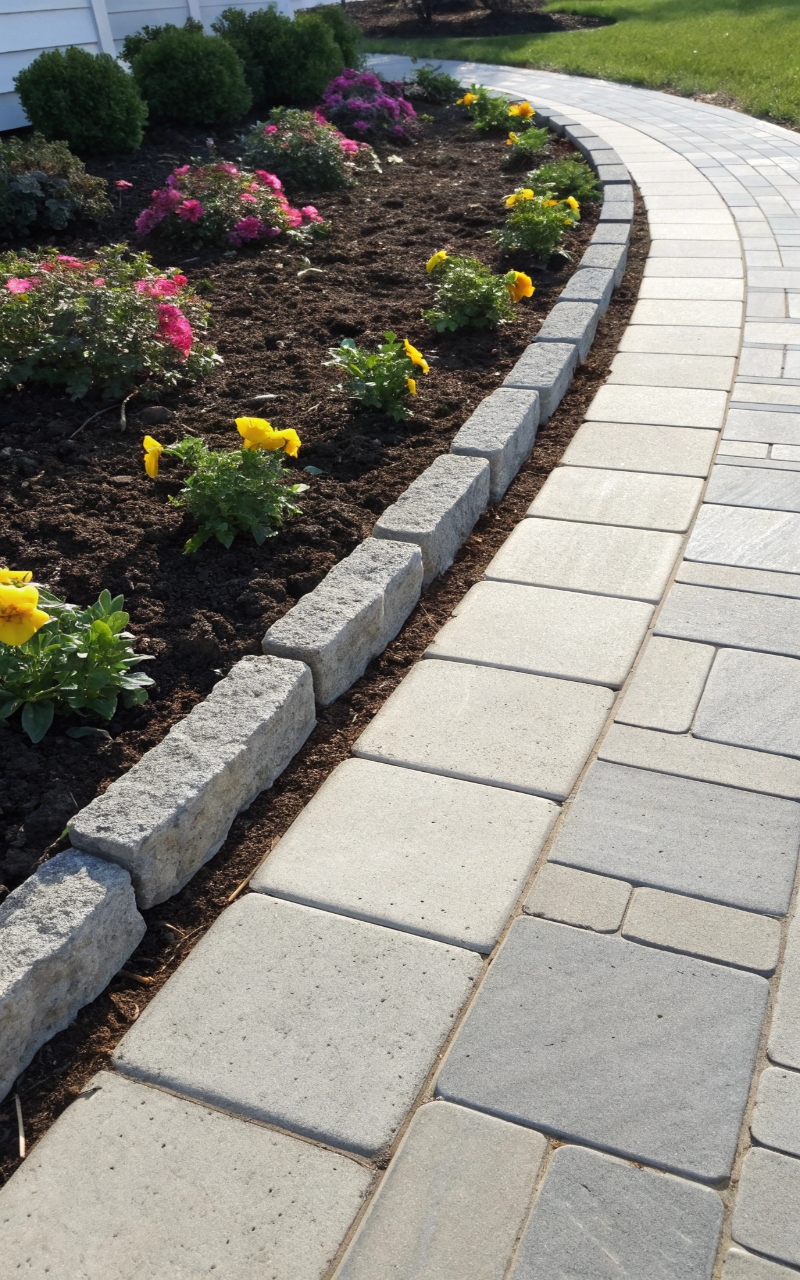 Using flat pavers created a clean, uniform edge that feels polished and structured. The smooth surface contrasts nicely with soil and plants. It’s durable and easy to maintain. The layout can be straight or curved. It’s a reliable choice. Pro Tip: Level the ground before placing pavers.