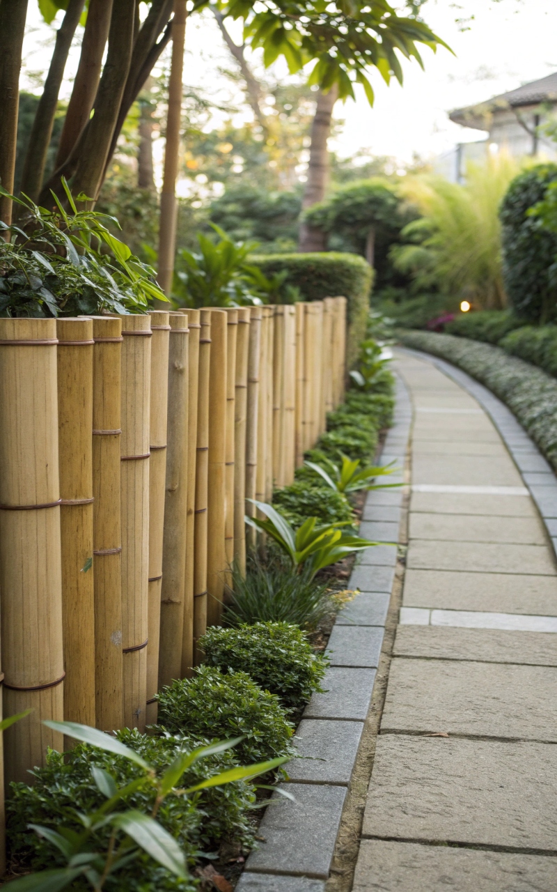 I lined up bamboo pieces, and it gave the flower bed a light, natural border that blends easily with plants. The vertical lines create a subtle rhythm. It’s affordable and easy to install. The look feels calm and balanced. It’s simple, but unique. Pro Tip: Secure pieces tightly for stability.