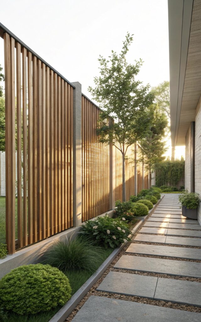 1. Wooden Slat Fence with Spacing