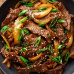 Garnish and serve: Sprinkle with sesame seeds before serving. Serve immediately over cooked rice for a complete meal, ensuring each bite has a perfect balance of tender beef, crisp vegetables, and bold Korean flavors.