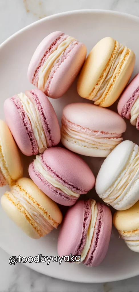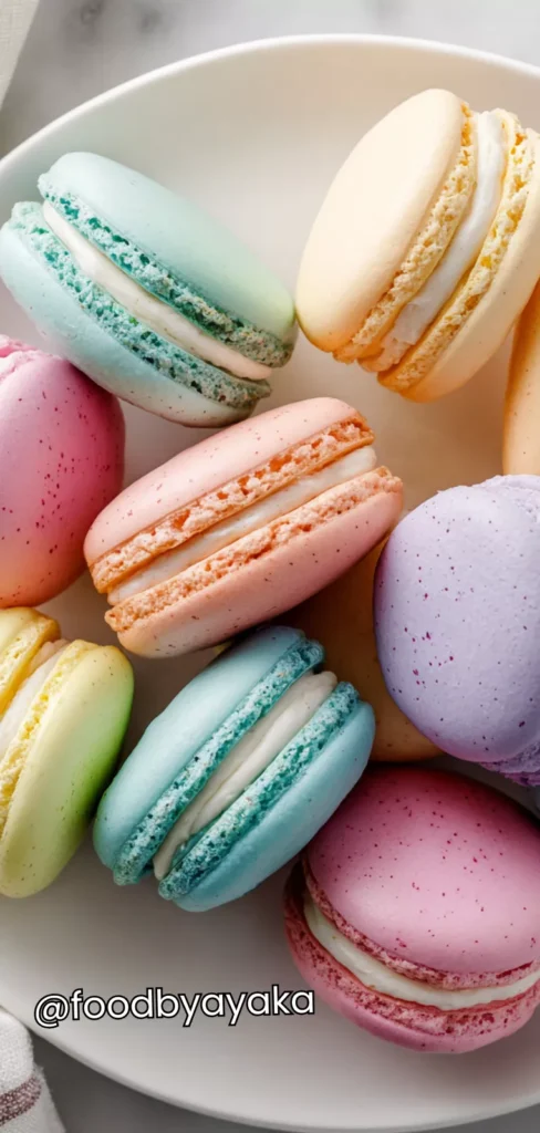 You can serve these macarons during afternoon tea, some baby showers, also with small dessert platters for birthdays or anniversaries. Their colors, fillings, and flavors are so easy to customize that they instantly elevate any table spread.