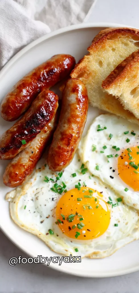 I also like to add colorful sides, such as roasted cherry tomatoes, sautéed mushrooms, or lightly steamed asparagus, to make the plate feel balanced and more visually appealing. Toast, warm bread, or even a buttery croissant on the side works beautifully, allowing you to soak up the egg yolk and sausage juices for a more indulgent experience.