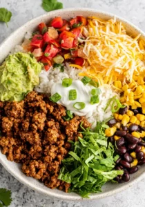 Finally, I let everyone add their favorite optional toppings like sliced green onions, jalapeños, or crushed tortilla chips. I love seeing how everyone customizes their bowl—it turns a simple meal into a fun and interactive experience. Serving the bowls immediately ensures the chicken stays warm, the rice fluffy, and the toppings fresh and crunchy.
