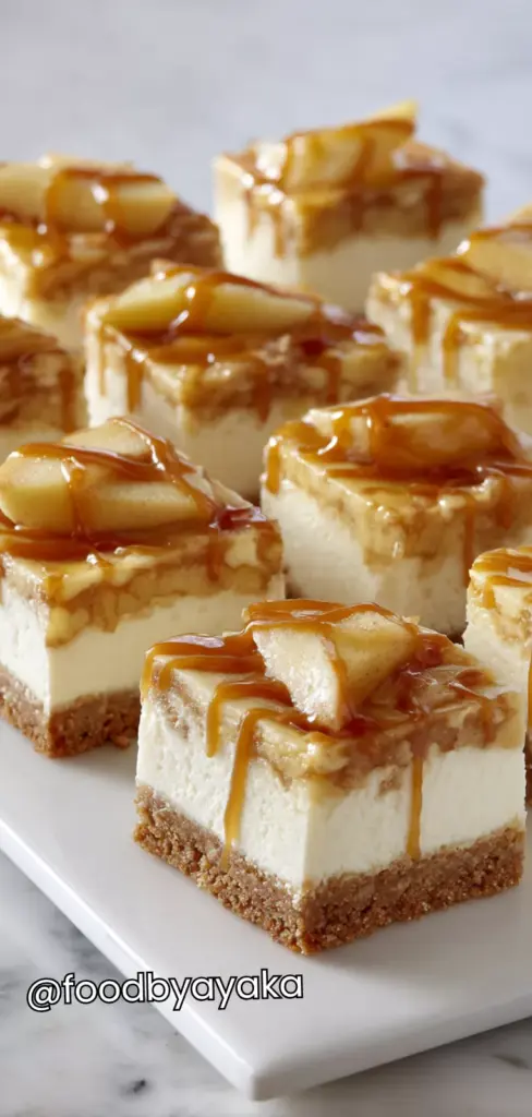 minutesIndulge in these Caramel Apple Cheesecake Bars with a buttery graham crust, creamy cheesecake layer, spiced apples, and rich caramel topping. Easy, crowd-pleasing dessert perfect for holidays, parties, or make-ahead treats.