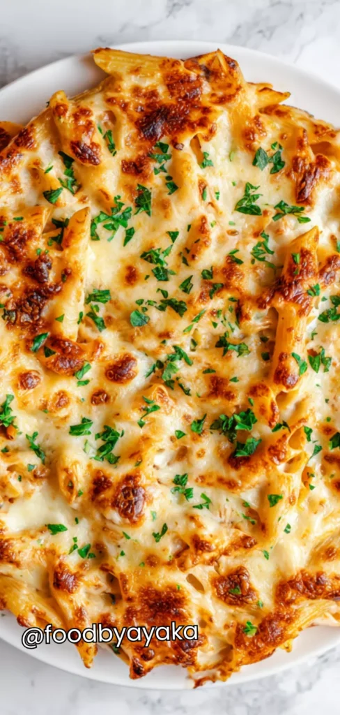 I like to serve Cheesy Penne Pasta Bake straight from the oven while the cheese is still melted and bubbly on top. I usually spoon it onto plates while it’s warm so the pasta stays creamy and soft. I often add a light sprinkle of fresh herbs or extra Parmesan just before serving to make it feel special.