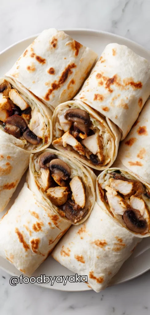 - Creamy Garlic Wrap: Add a garlic yogurt sauce inside the wrap. Mushrooms and chicken get tossed lightly in it. Perfect for creamy, comforting flavors.