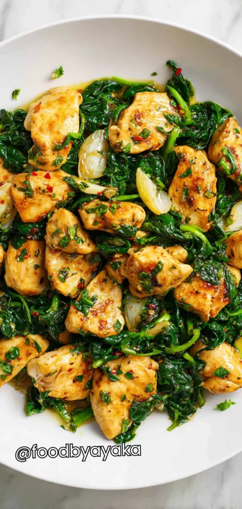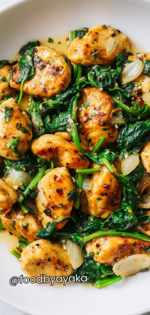minutesQuick and easy Chicken and Spinach Garlic Skillet recipe – tender chicken, garlicky spinach, and a flavorful buttery sauce. Perfect for weeknight dinners or meal prep!