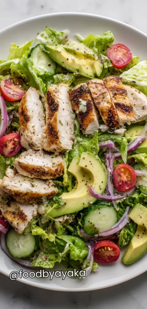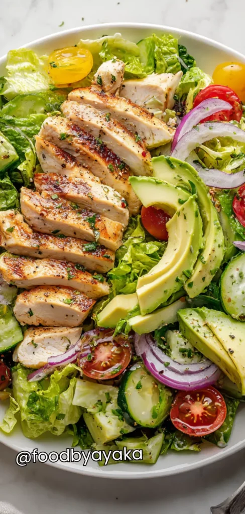 Yes! This salad is packed with protein from the chicken and healthy fats from avocado, which help keep you full and satisfied. It’s also loaded with fiber from fresh vegetables, making it light but nutrient-dense.