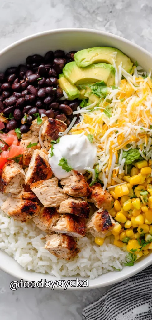 I have been making burrito bowls for years, and they’ve become a weekly favorite in my house. I use fresh lime juice, smoked paprika, and garlic to give the chicken a deep, zesty flavor that makes everything taste special. Always let the chicken rest after cooking—it keeps it juicy and tender every time. The secret is in layering the ingredients beautifully so that every bite feels balanced—savory, creamy, and full of texture.