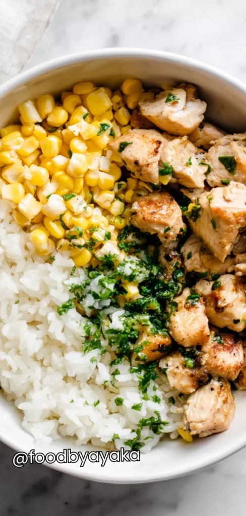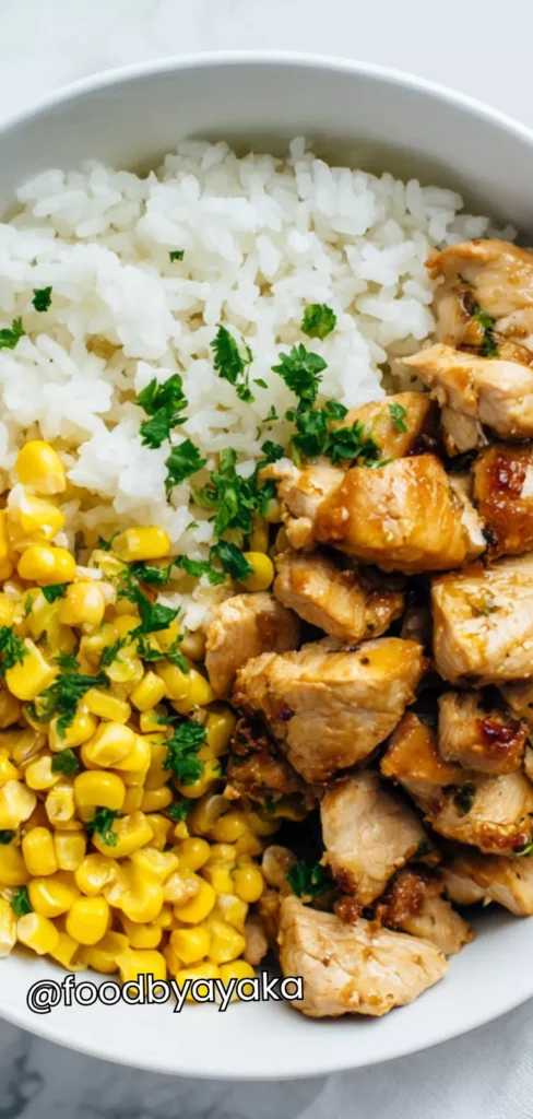 minutesThis Chicken Corn Rice Bowls recipe is simple, colorful, and flexible. You can make it your own by adjusting the spices, toppings, or grains. It’s a recipe that’s perfect for weeknights, meal prep, and family-friendly dinners.