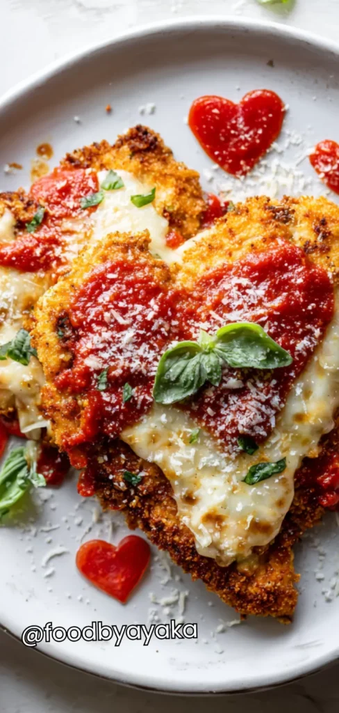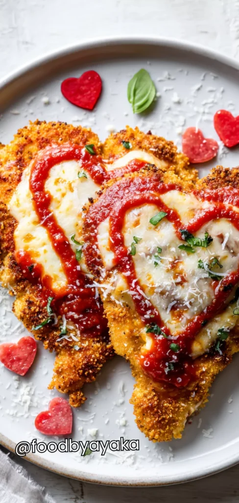 This dish is not about complicated techniques or fancy ingredients. It is about intention, balance, and presentation. When you serve Chicken Parmesan as a Valentine plate, it becomes more than food. It becomes a shared experience, a quiet moment, and a simple way to show love through cooking. Whether it’s for a partner or for yourself, this recipe creates comfort with a romantic touch.