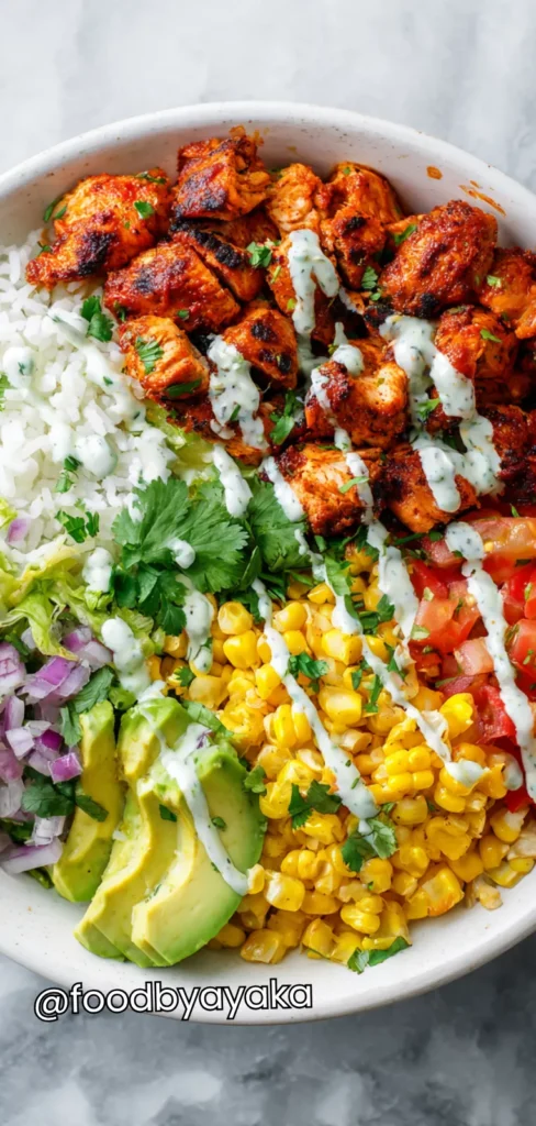 - Play with textures: Layer your bowl with soft rice, crunchy salsa, juicy chicken, and creamy toppings for that perfect bite.