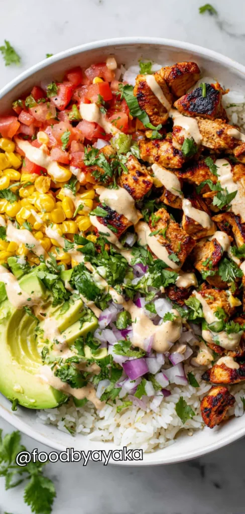 minutesThis Chipotle Chicken Bowl with Corn Salsa is everything you want in a homemade meal—easy, vibrant, and deeply satisfying. It’s a perfect blend of bold flavors and comforting textures that never fails to impress, whether you’re cooking for yourself, family, or friends.