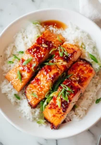 - Low-Carb Option: Skip rice and serve salmon over zucchini noodles or cauliflower rice. Still flavorful and lighter.