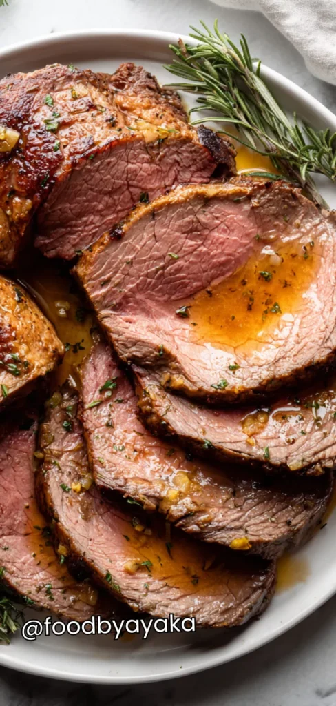 Rest the roast: Remove the roast from the oven and loosely tent it with foil. Let it rest for 15–20 minutes before slicing. This step is crucial because it allows the juices to redistribute through the meat, keeping every slice tender and moist.