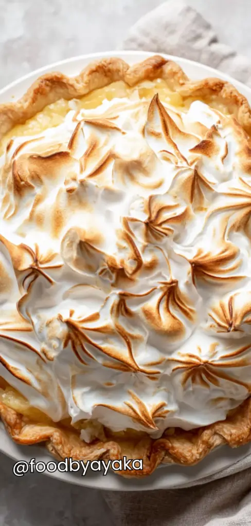- Top with meringue and toast: Spread meringue over the coconut filling, ensuring it touches the crust edges to seal. Use a kitchen torch to lightly toast the peaks until golden brown. If you don’t have a torch, bake in a preheated 350°F (175°C) oven for 8–10 minutes, watching carefully to prevent burning.