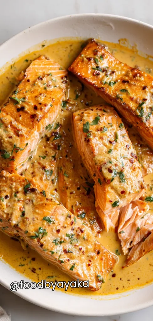 I like meals that are simple yet feel fancy, but I don’t like recipes that are too complicated or take hours in the kitchen. In this recipe, simplicity is key, and the creamy, slightly spicy sauce paired with juicy salmon is both elegant and easy to make. I adore salmon because it’s tender, flavorful, and cooks so quickly. But what really makes this recipe special is the combination of creamy coconut milk, rich garlic butter, and fragrant curry. The flavors are balanced, comforting, and just a little bit indulgent, making each bite satisfying and exciting at the same time.