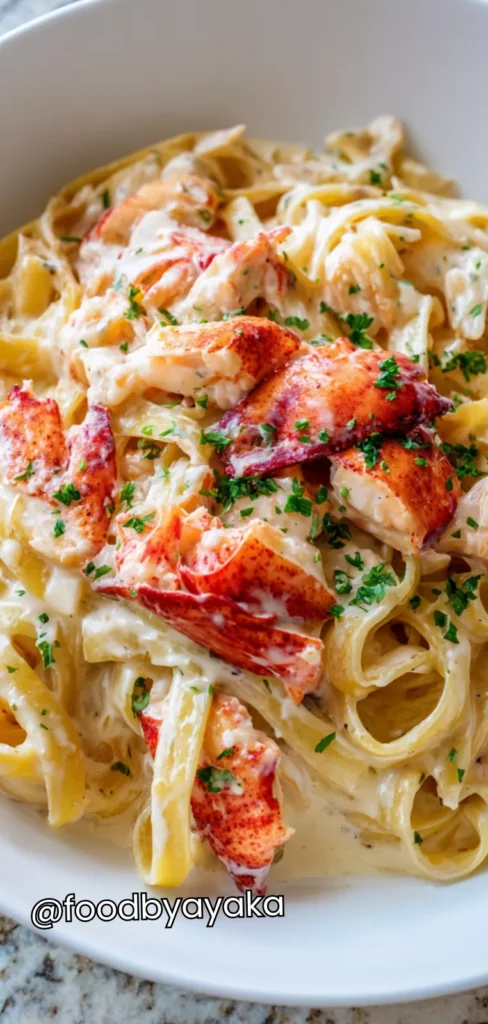 I have tried this recipe many times, and each time I use fresh lobster when I can, but frozen works beautifully too. I always make sure to cook the pasta perfectly al dente, and I use a combination of butter and olive oil to sauté the garlic so it doesn’t burn. Always stirring the sauce slowly while adding Parmesan ensures it stays silky and doesn’t clump.