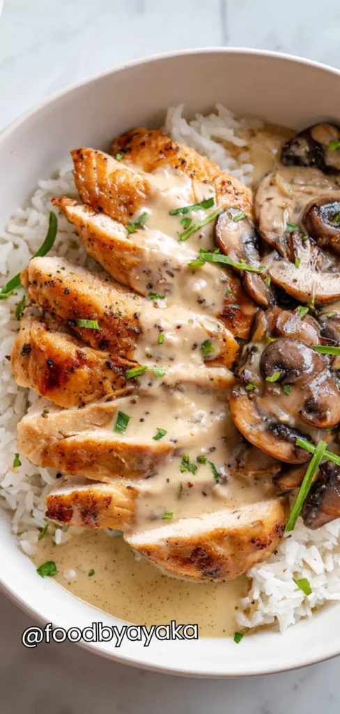 minutesA rich and comforting Creamy Mushroom Chicken Rice Bowl recipe made with tender chicken, sautéed mushrooms, and a velvety sauce. Easy to prepare, family-friendly, and perfect for busy weeknights.