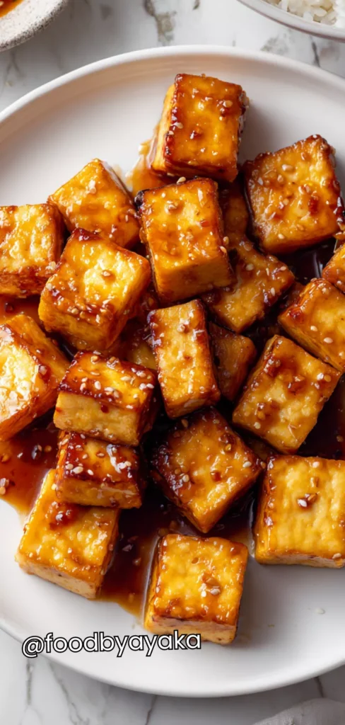 I love serving this tofu over warm jasmine rice because the sweet, sticky glaze melts slightly into the rice and creates the perfect balance of flavors. I usually add steamed vegetables like broccoli, bok choy, or snap peas so the meal feels complete and nourishing. The crisp tofu adds texture, and the sauce ties everything together effortlessly.