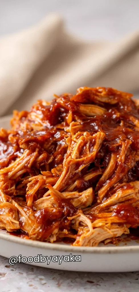Serve: Spoon the saucy shredded BBQ chicken onto sandwich buns, over rice, or alongside mashed potatoes. You can also top it with coleslaw for extra crunch and freshness. Serve warm and enjoy this simple, comforting meal.