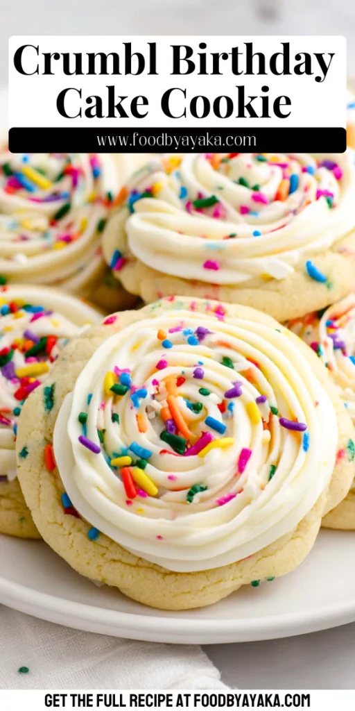 The Crumbl Birthday Cake Cookie is a soft, bakery-style cookie made with a buttery vanilla dough mixed with rainbow sprinkles, then topped with a thick swirl of sweet buttercream frosting and even more sprinkles. It’s inspired by the fun flavors of classic birthday cake—sweet, colorful, and festive.