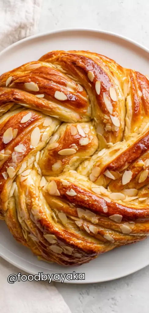 I love serving this pastry warm because the almond filling is at its softest and most fragrant right after baking. The flaky layers stay crisp on the outside while the center feels rich, slightly creamy, and sweet. It tastes especially good when it is freshly cut, still slightly warm, with the almond aroma filling the kitchen.