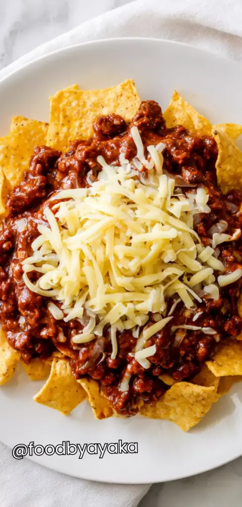 I have prepared this recipe many times, and I use fresh garlic, well-seasoned beef, and a good-quality chili base always. Adding spices at the right stage and allowing the mixture to simmer helps develop a richer taste that blends beautifully with the chips and cheese.