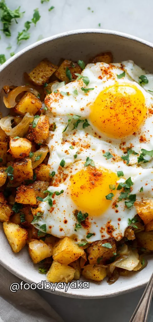 I have tried many different breakfast recipes over the years, but this one quickly became a favorite. I use medium potatoes for the perfect crisp, whisk my eggs lightly before cooking, and always season the potatoes with smoked paprika and garlic powder. This little step makes a big difference in flavor and keeps the dish from being too plain. Always make sure to cook the potatoes until they are golden brown so you get that perfect crunch in every bite.
