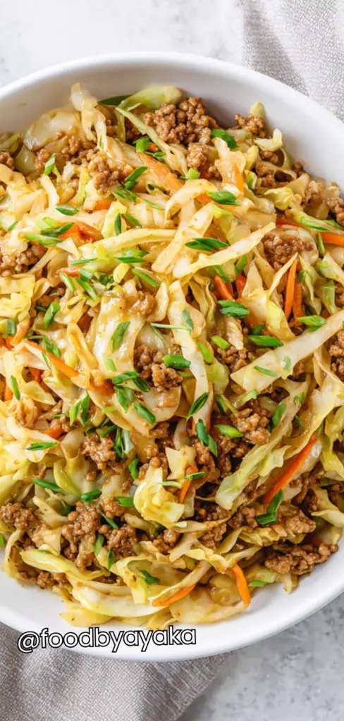 My husband always says he loves traditional egg rolls, but frying them at home can feel like too much work sometimes. This Egg Roll in a Bowl with Coleslaw Mix recipe is one of those meals that feels both comforting and incredibly easy at the same time. It takes everything you love about a classic egg roll—the savory meat, the tender cabbage, and the flavorful sauce—and turns it into a quick, one-pan dish without the need for wrapping or frying. It’s perfect for busy days when you want something warm, satisfying, and homemade without spending too much time in the kitchen.