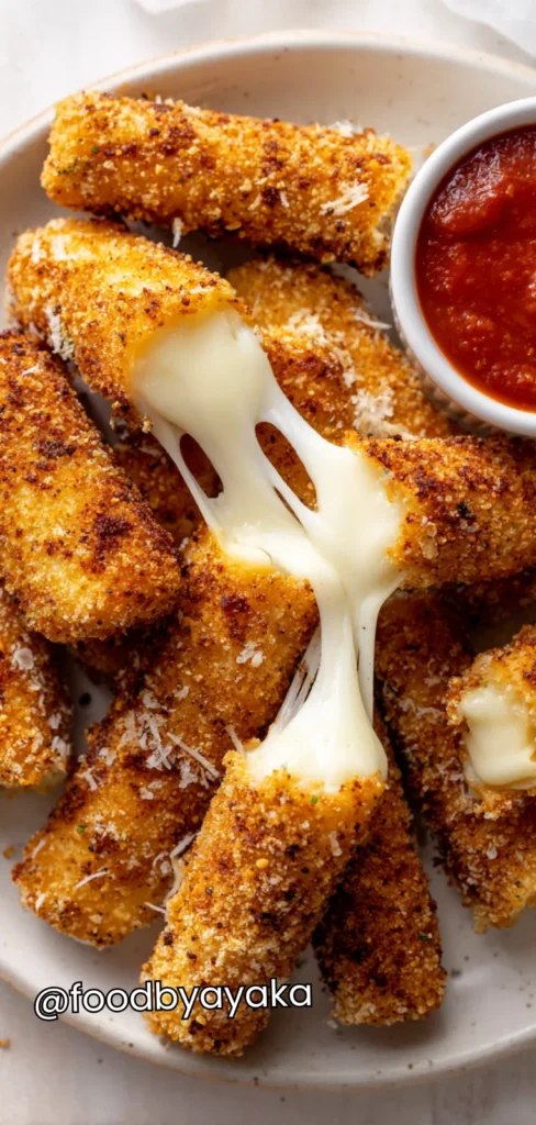 You can make them lighter by using part-skim mozzarella or air frying the sticks. They still taste indulgent but with less oil, which makes it a better option for regular snacking.