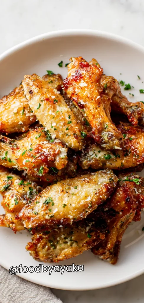 I love how easy it is to make these wings at home, but what I really enjoy in this recipe is how customizable it is. You can adjust the garlic to your liking, sprinkle on fresh herbs, or even add a little spice if you want a kick. Garlic Parmesan Chicken Wings are a classic favorite that combine crispy chicken wings with the rich, nutty flavor of Parmesan cheese and the bold taste of garlic. This recipe is simple, flavorful, and perfect for any occasion—from casual weeknight dinners to parties or game days. The wings come out golden, crispy, and coated with a fragrant garlic-Parmesan mixture that makes them irresistible.