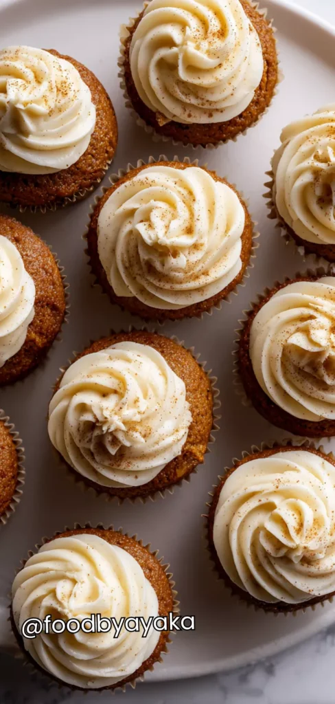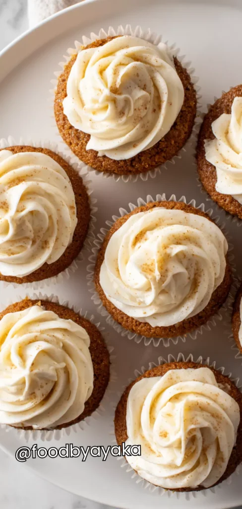 I love serving these cupcakes with a hot cup of spiced tea, coffee, or even a warm mug of cocoa. I usually place them on a decorative platter, arranging them neatly so each cupcake looks inviting and ready to be picked up. The swirl of cream cheese frosting looks extra appealing when I sprinkle a little cinnamon or ginger on top, or add festive sugar decorations, which immediately makes them feel like a holiday treat.
