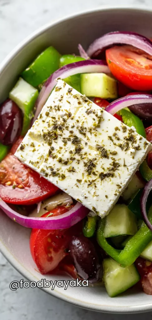 I have always enjoyed making this salad on days when I want something fresh without spending too much time in the kitchen. I use ripe tomatoes, fresh cucumbers, red onion, olives, and high-quality feta cheese. Always use good olive oil—Greek if possible—because it truly makes a difference in the dressing and brings out the natural flavor of the vegetables.