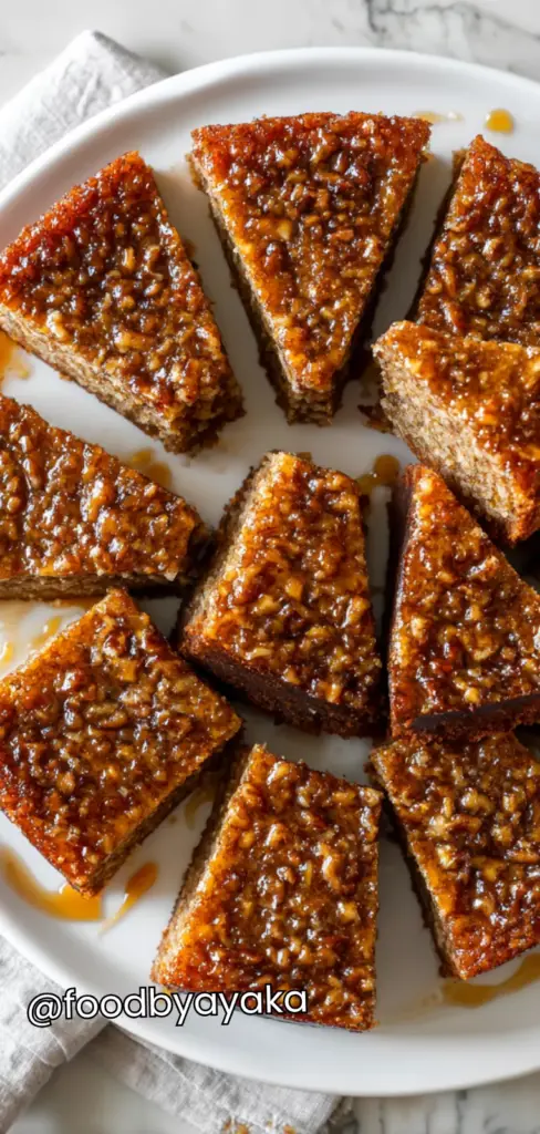 - Rest and serve: Allow the cake to rest for at least 1–2 hours so it can fully absorb the syrup and develop its signature moist texture. Slice into squares or diamond shapes and serve. For best flavor and texture, let it sit longer or overnight before serving.