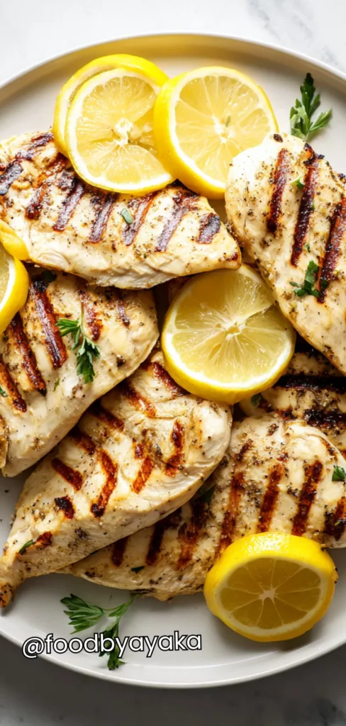 I like to serve this grilled chicken straight from the grill while it’s still warm and juicy. I place it on a large plate, spoon a little extra lemon juice over the top, and add a few lemon slices on the side. The fresh smell and bright color make the dish feel light and inviting right away.